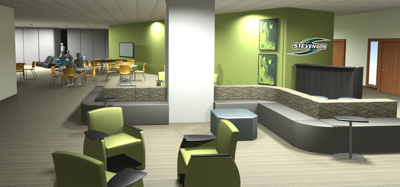 The Stevenson University Office of Student Affairs is excited to announce the creation of the new Center for Student Life and Leadership. The new Center will be located on the second floor of Garrison Hall South, adjacent to the Reading Room, and will offer 8,000-square-feet of dedicated space for SU student clubs and organizations. Featuring new furnishings, multifunctional spaces, and offices for Student Activities staff and student organizations, the Center will create a comfortable atmosphere where student groups and leaders can host small- and large-group meetings, brainstorm, plan initiatives and events, or reflect and learn together.