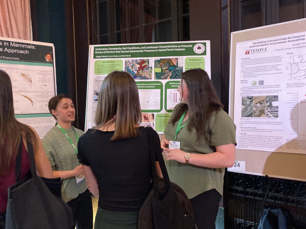 Environmental Science majors Maggie Sehnert (’26) and Lauren Sober (’26) also presented a poster of research they had conducted with Dr. Norris: “Understory Complexity, Soil Conditions, and Landscape Characteristics as Potential Drivers of Eastern Red-backed Salamander Presence in Varied Forest Habitats.”