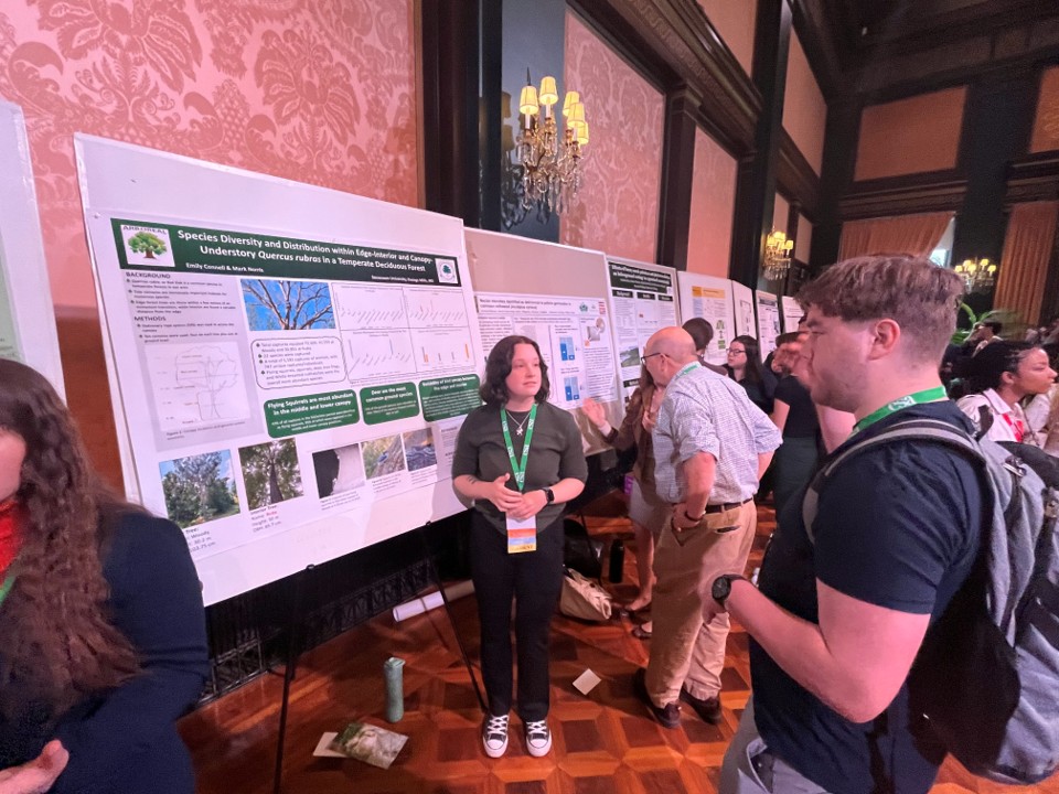 Environmental Science major Emily Connell (’25) and Dr. Mark Norris, Professor of Biological Sciences, presented the poster “Species Diversity and Distribution within Edge-Interior and Canopy-Understory Quercus rubras in a Temperate Deciduous Forest.”