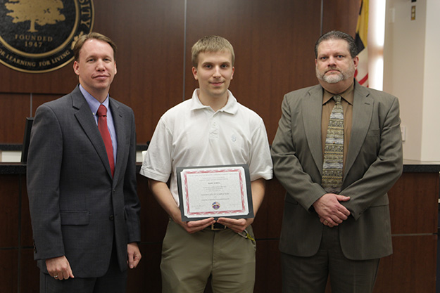 Stevenson University students Mark Sokol ’15 and Antoine Scott ’15 are the first students in the nation to pass the Digital Forensics Examiner exam sponsored by the Department of Defense Cyber Crime Center (DC3).