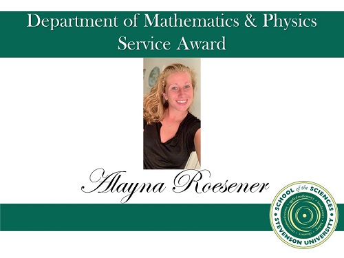 Congratulations to applied math senior, Alayna Roesener, on receiving the 2020 Math and Physics Department Service Award! This award is given each May to the graduating senior in the department who has made significant, sustained contributions to the department and to the school. Alayna has participated in and taken a leadership role all of our activities and events. She is a regular at Math Tea, our recruitment events, Spring Spectacular, Mathstravaganza and the department’s annual Hurricane Relief Bake Sale. Alayna is an integral part of our department and we’re excited to give her this well-deserved award!