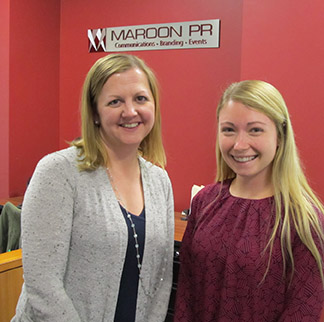 Senior Samantha Hauf (right) has been working with clients’ social media accounts at Maroon PR, an innovative and comprehensive full-service public relations and marketing company located in Columbia, Md. Under the mentorsh.