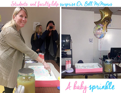Students in Dr. Leeanne Bell McManus' Advanced Event Planning class and members of '47 House combined with the departmental faculty to pull off a surprise baby "sprinkle" for their teacher.