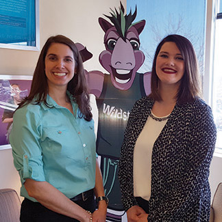 Senior Colleen Shipley (right) has found what she hopes will be her career calling in Stevenson’s Office of Admissions, under the mentorship of Elizabeth Fitzgerald, the associate director of admissions. Colleen has been wo.