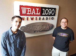 Senior Will Comotto (in the photo on the right) was drawn to an internship at Baltimore's 98 Rock radio station because of his interest in all things media. His own job at Stevenson's radio station prompted his application fo.