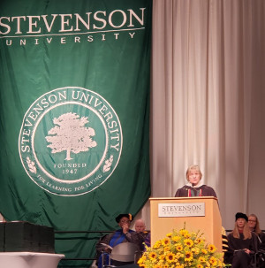 Business Communication faculty member Chip Rouse took a moment at the winter 2019 Commencement to reflect with the graduates about their journey at Stevenson. She was offering the reflection by way of being the recipient of t.