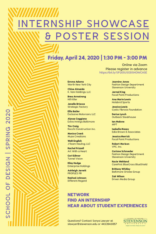 Some of the Business Communication interns participated actively in the traditional School of Design internship showcase on Friday, April 24 -- this year as an online Zoom presentation! Internship coordinator Sonya Lawyer put.