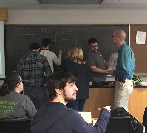 Students and faculty gathered for the last club meeting of the semester. There was good food (Terri’s Cafe and Rita’s) and Chemistry Jeopardy! A great time was had by all. Special thanks to the outgoing officers for a phenomenal year!