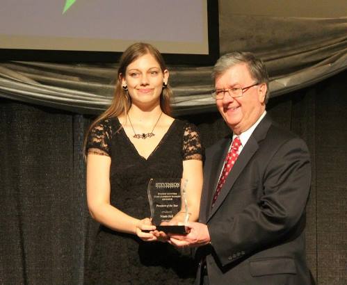 Congratulations to biochemistry senior, Nicole Heil, on winning the President of the Year award for her leadership in the Anime Club. Nicole was recognized for her exemplary leadership and commitment to the values of Stevenson. She is shown here receiving her award from President Manning.