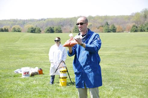 Dr. Jeremy Burkett (shown above) together with members of the Department of Mathematics and Physics organized the 1st Annual Spring Spectacular. The well-attended event included demonstrations, games, liquid nitrogen ice cream making, a vacuum ping-pong ball shooter, a thermite demonstration, a telescope with a solar lens, and other various puzzles and games scheduled throughout the afternoon. An amazing time was had by all!