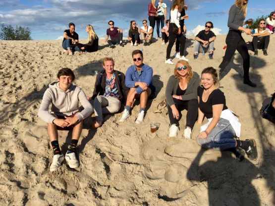 From L to R: Austin, William Beatty (Tulane University), Brendan Gaffney (Brown University), Alyssa Savoca (Denison University) and Colleen Dychdala (Tulane University), enjoying a deep house music (renowned in Amsterdam) festival at the beach. Austin says he has formed a lifetime bond with the others he befriended during his time abroad.