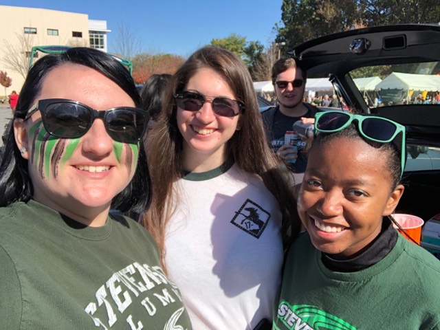 Alums Courtney Aceto, Stacey Wardenfelt and Corinna Carter were spotted at the homecoming tailgate on Saturday on the north campus. It was a gorgeous day, perfect for reconnecting with old friends. The day was topped off with a W against Albright at Mustang Stadium.