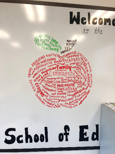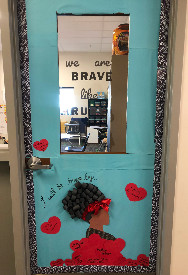 To celebrate Black History Month, Joy Lee ('25) designed and decorated the entrance to the Education classroom in tribute to Ruby Bridges. The door invites all who enter to share how "We are Brave like Ruby.
