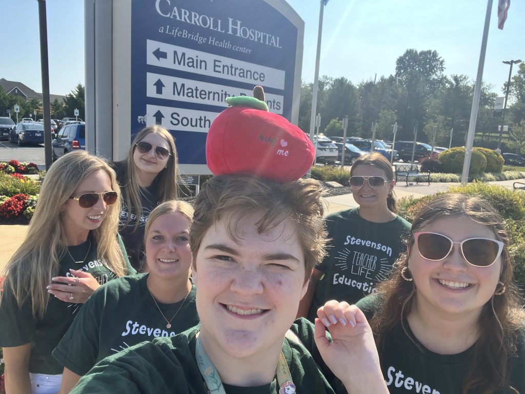 Wearing their Stevenson green SOE t-shirts, each team brought along a stuffed apple, taking selfies with the apple at each spot. The kind of locations they discovered were kid and family friendly places like parks, playgrounds, rec centers, and libraries, as well as nearby hospital or healthcare facilities and emergency personnel such as the fire department or law enforcement. They toured the different types of residential housing in the area, and looked for school bus stops, bike lanes, and other forms of transportation. They took selfies in front of grocery stores and restaurants, and anything unique to the area.