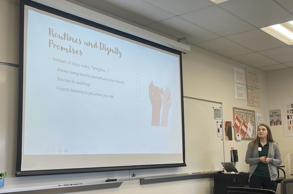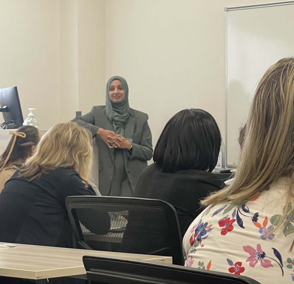 After students socialized and enjoyed breakfast, Dr. Khadeeja Shafi, Director of Graduate Studies, kicked off the morning’s activities. She emphasized the importance of each MAT student’s individual journey and how she enjoyed matching her students’ online faces to their actual selves! Dr. Shafi shared information relevant to Year 1 and Year 2 students, depending on where they are in their MAT program. The new Teaching Readiness Performance Assessment (TRPA) was introduced, and internship requirements were shared. Stevenson education graduate students were invited to join Kappa Delta Pi (KDP), the international honor society for educators.