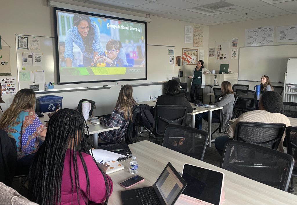 After introductions, students were separated by cohort into breakout sessions. Professor and SOE alum Sally Edmonson shared classroom management strategies and resources with Year 1 students, and Dr. Shafi shared more extensive information on Praxis, TRPA, and internships with Year 2 students. During the second set of breakout sessions, students were separated by programs. MAT Early Childhood Education students attended a computational literacy session led by Stevenson alum and MAT Adjunct Instructor, Dr. Lauren Speiser. Meanwhile, MAT: STEM students participated in a session led by MAT: STEM alum Jessica Rutledge on inquiry-based learning. STEM students learned multiple teaching approaches on a topic leading to more effective learning and even fought it out in a “Battle of the Beaks” activity! MAT: STEM Instructors joined this group, with Dr. D’Andrea Jacobs and Dr. Amy Parlette leading students in collaborative discussions in which they shared insights about their unique STEM backgrounds and how they bring those experiences to their teaching and learning.