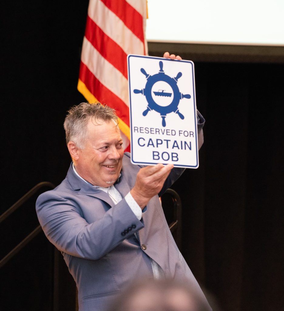 Dr. Kobett recognized and thanked the faculty. Jenna Burton, on behalf of all the seniors, presented Dr. Bob Pelton with a special sign to commemorate his retirement.