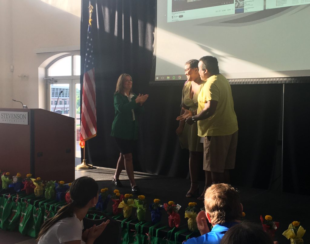 The festivities began with a poster session highlighting strengths demonstrated in internship classrooms. Associate Dean and Professor, Dr. Beth Kobett, then welcomed attendees. She described the Marigold Effect and encouraged new teachers to “find their marigold,” someone special who can be a source of support, help develop growth, and be a positive companion. As one of the gifts interns received for the occasion, each was presented with a marigold plant to begin their professional journey and remind them to find their marigold.