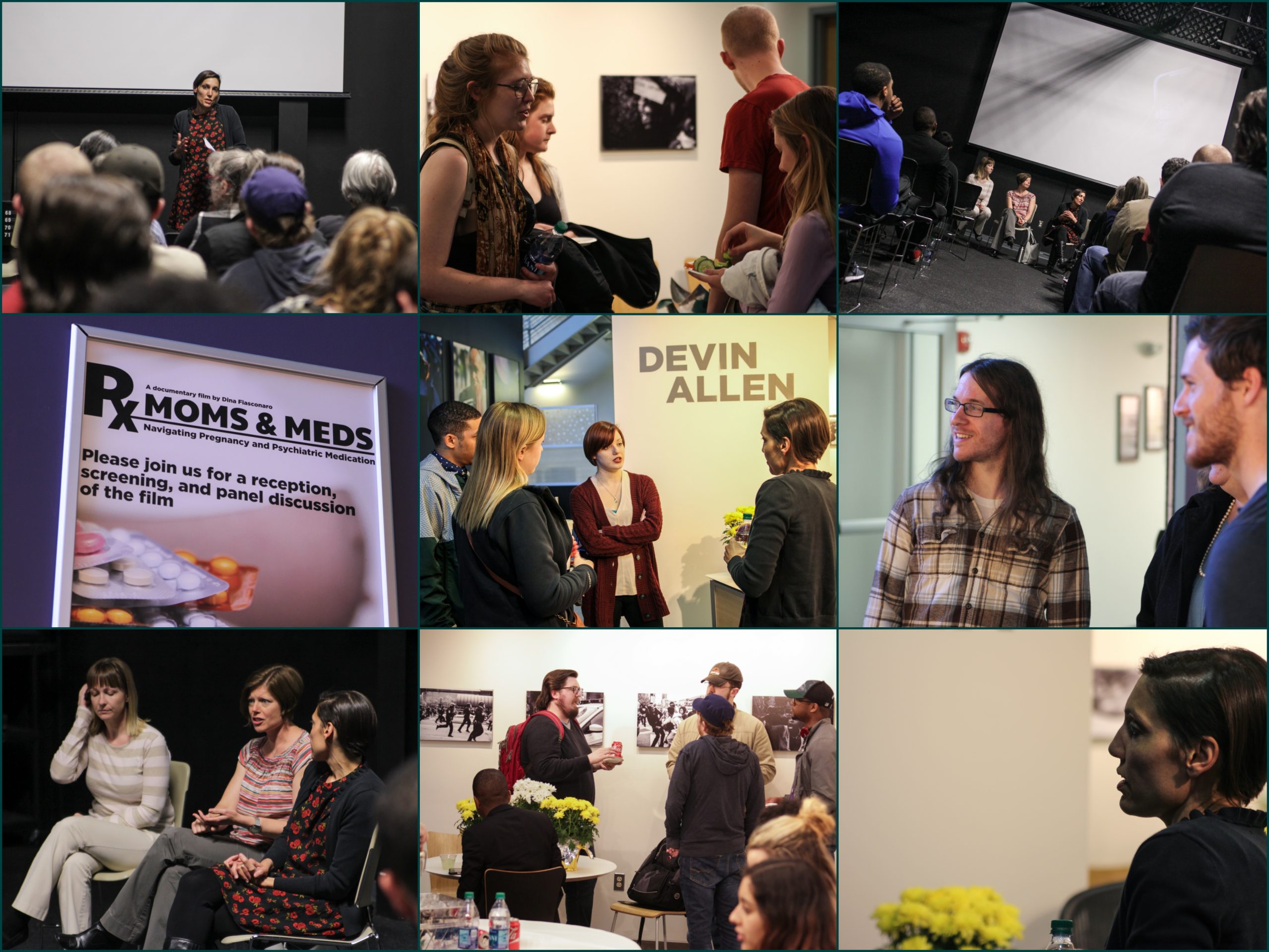 Newly promoted (to the rank of Associate Professor) FMI Professor Dina Fiasconaro hosted a screening of her new feature documentary Moms & Meds last week, on Tuesday, April 5. Above are photos from the pre-screening reception.