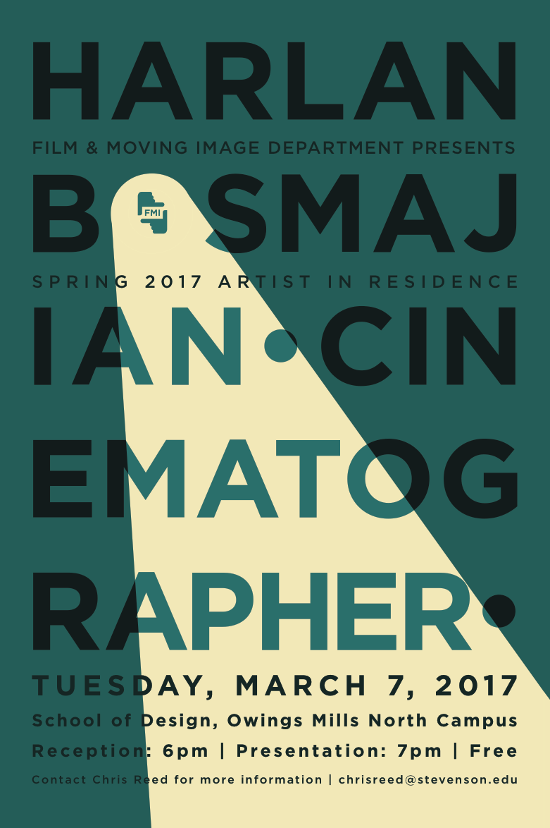Cinematographer Harlan Bosmajian will visit Stevenson's Department of Film & Moving Image on March 6-8, and give a lecture on his work on March 7, as per the above poster. He has over 30 feature films to his credit, including.