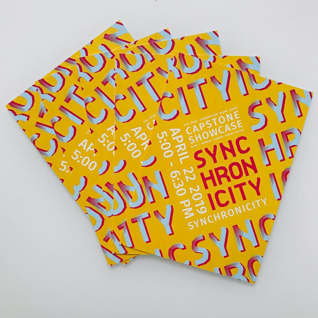 Synchronicity, the 2019 Senior Capstone Showcase, features the work of 24 graduating Visual Communication Design/Graphic Design majors. Over 100 people were in attendance at the April 22 opening reception.