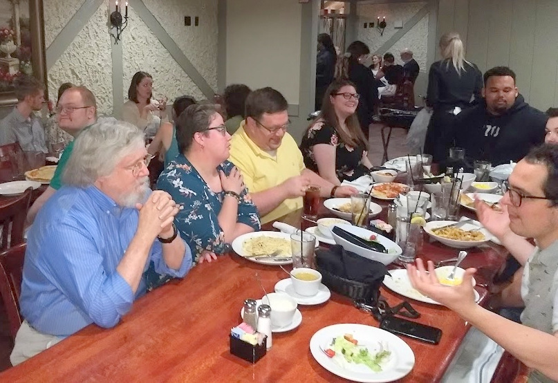 At the end of each semester the History majors get together with faculty, alums, and history professionals to enjoy some time networking.CAPTION: Majors, alums, faculty members, and invited professional from the field of hist.