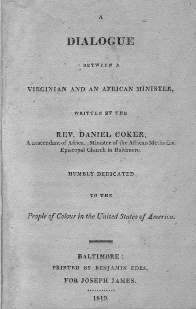 Born in Baltimore, Reverend Daniel Coker was an African American who wrote and preached the message of equality and abolition. A former slave, Coker was an advocate for the colonization of free African Americans to Africa, promoting the idea that this would provide them with greater opportunities and autonomy. By printing this book, Edes clearly identified his thoughts regarding equality. (Courtesy of Readex Early American Imprints. Series II, Shaw-Shoemaker (1801-1819))