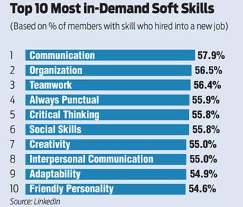 According to Linked In, at left are the top in-demand skills for the workplace. Notice that nearly all of them are directly applicable to the curriculum in the Business Communication and Comm Studies majors.