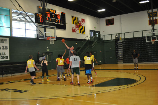 A students versus faculty basketball challenge was held last Friday, the third in a semesterly series of matchups. Last spring and fall, the faculty prevailed in matches of ultimate Frisbee and beach volleyball respectively.
