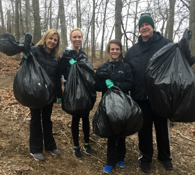 Teachers of Tomorrow (TOT) participated in an environmental initiative on a chilly Sunday, March 26.Faculty co-sponsors, Lisa Carswell and Ted Fischer, led the way into the woods in the lower Caves parking lot.