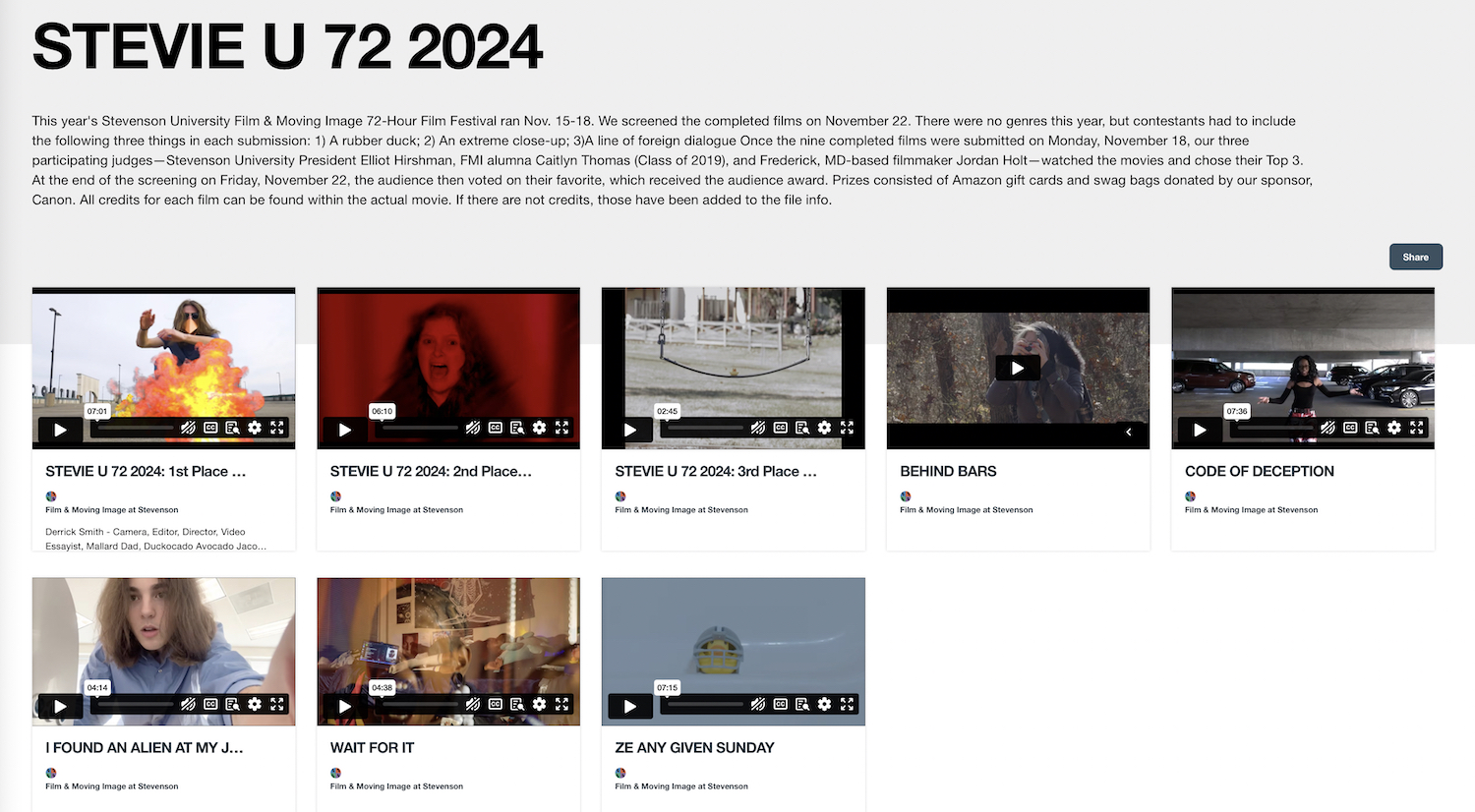 This year's Stevenson University Film & Moving Image 72-Hour Film Festival, sponsored by our amazing FMI Club, runs Nov. 15-18.