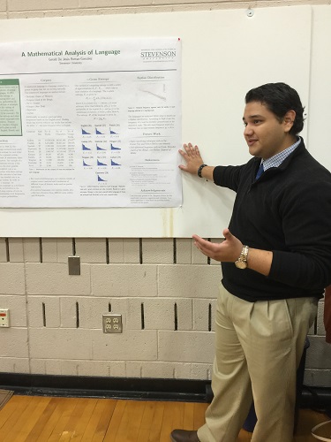 Congratulations to applied math major, Gerald Roman-Gonzalez! Gerald won 2nd place in the undergraduate research presentation for his talk on "A Mathematical Analysis of Languages" at the Mathematical Association of America S.