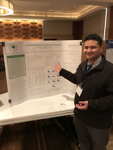 Applied Math junior, Gerald Roman-Gonzalez presented the research he did with math faculty member, Dr. Benjamin Wilson, at the undergraduate poster session at the Joint Mathematics Meeting in Atlanta.