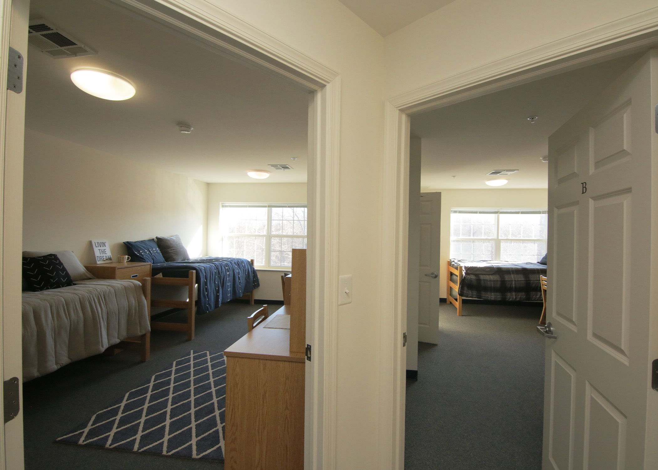 - Fully carpeted rooms and common spaces